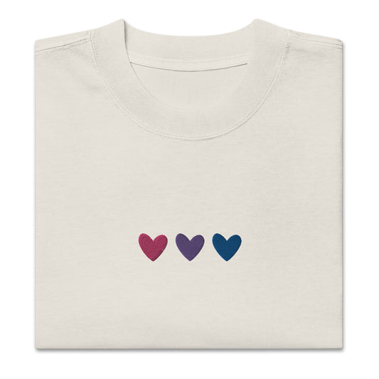 Bisexual Embroidered hearts Oversized faded t-shirt